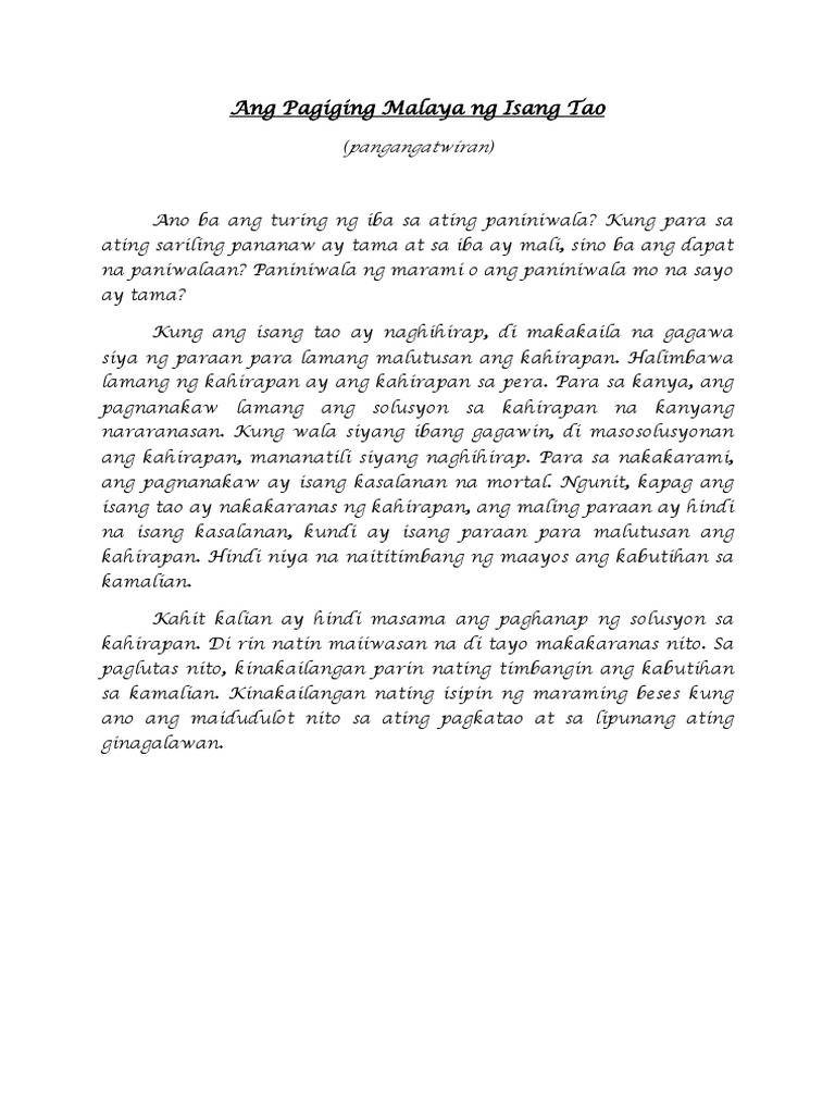 Ang Pagiging Malaya Ng Isang Tao Pdf